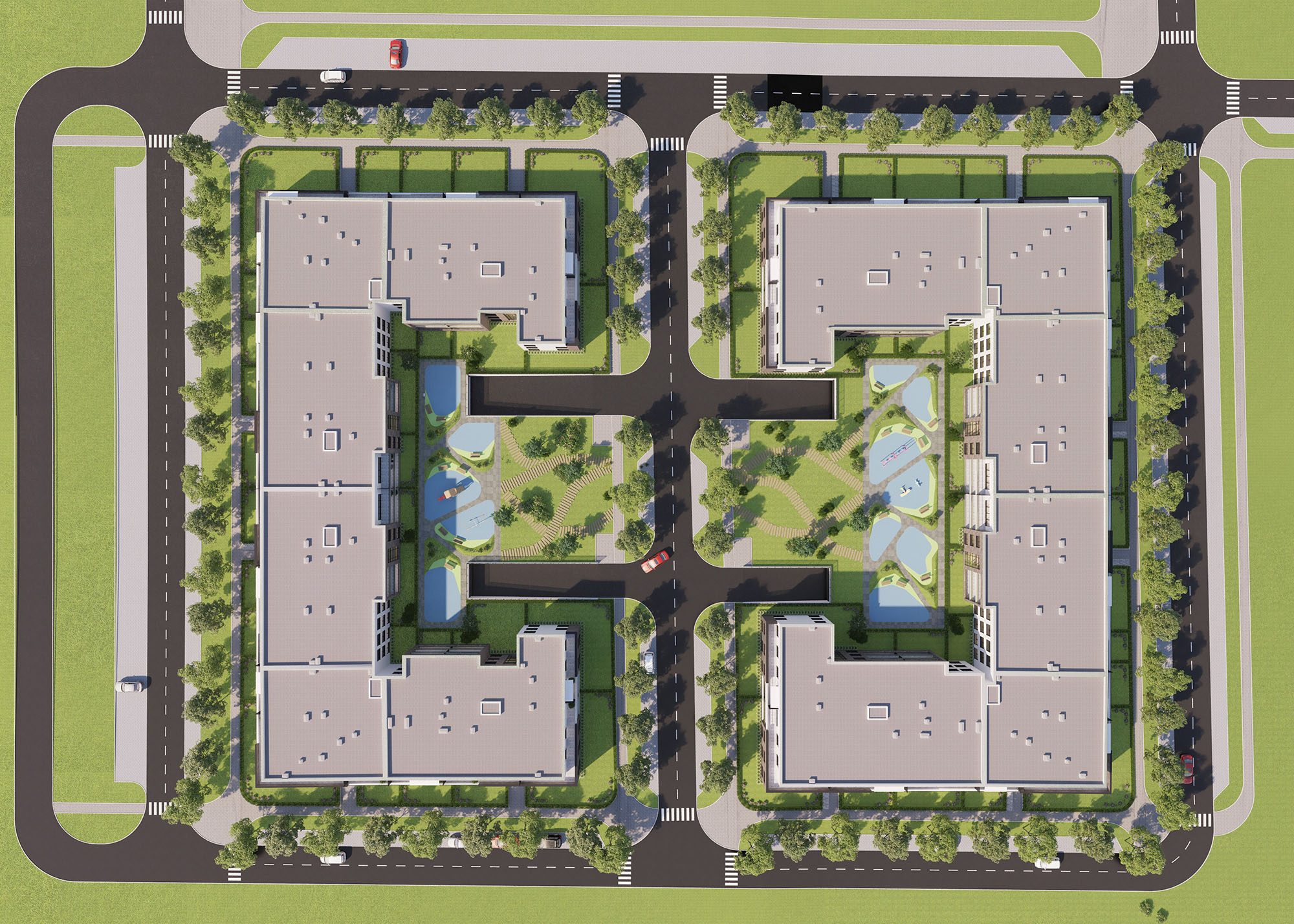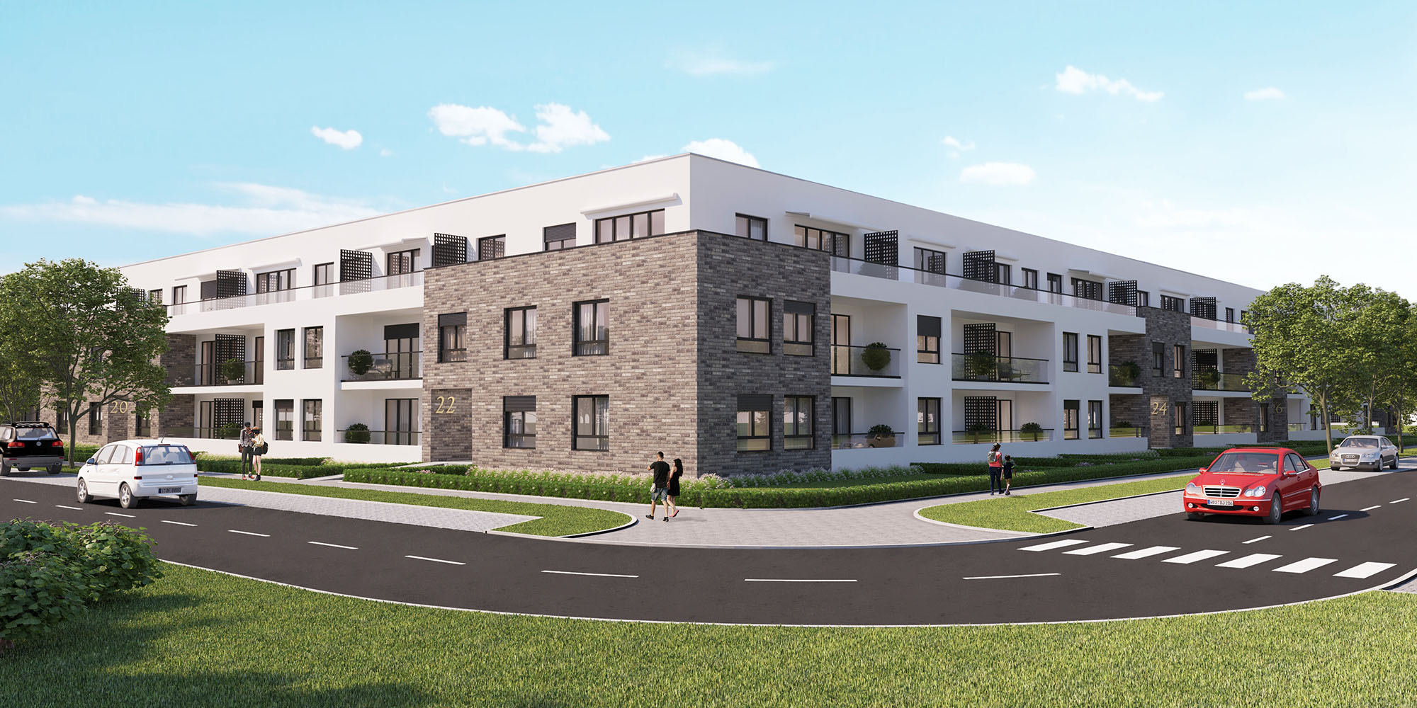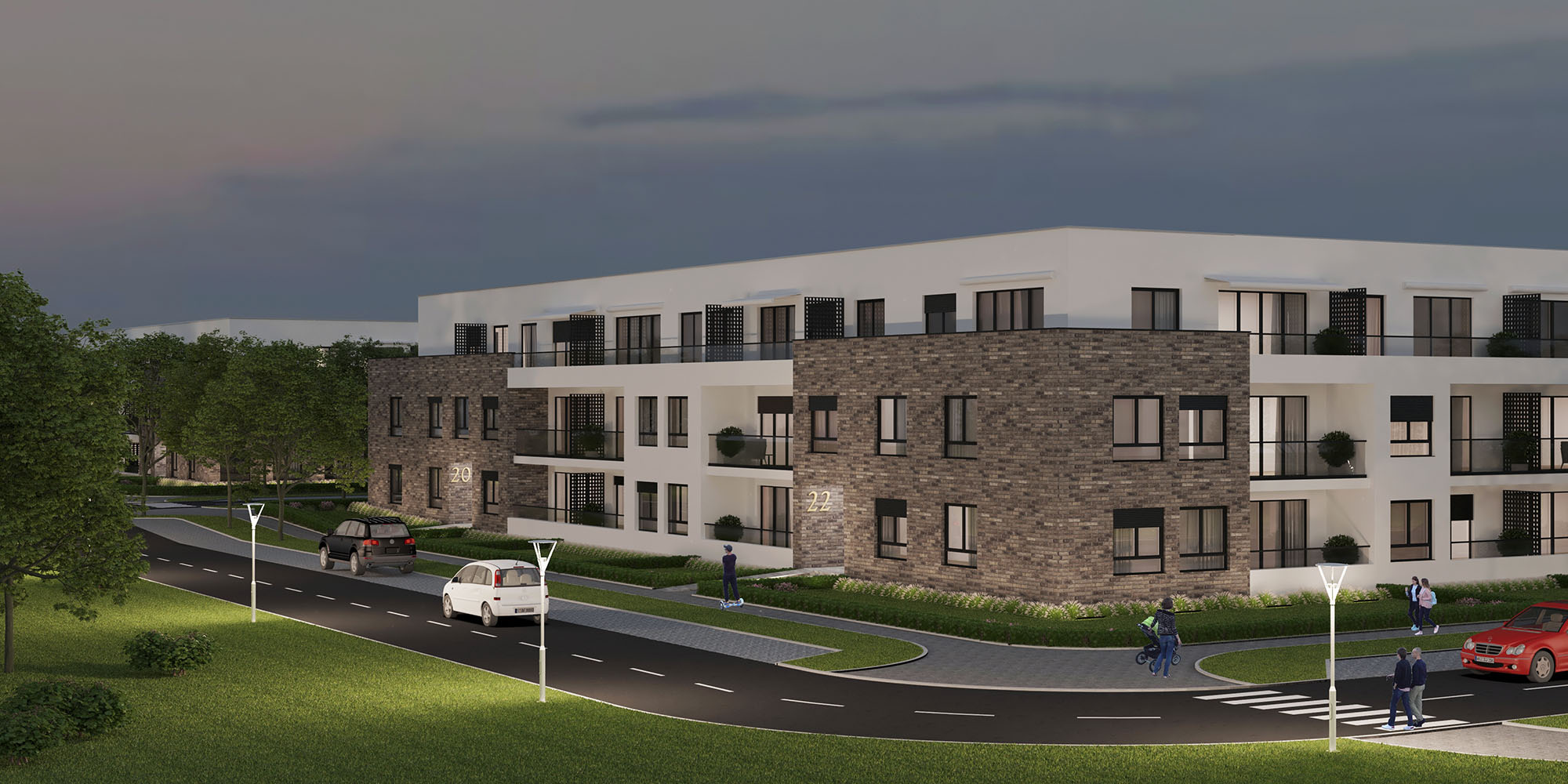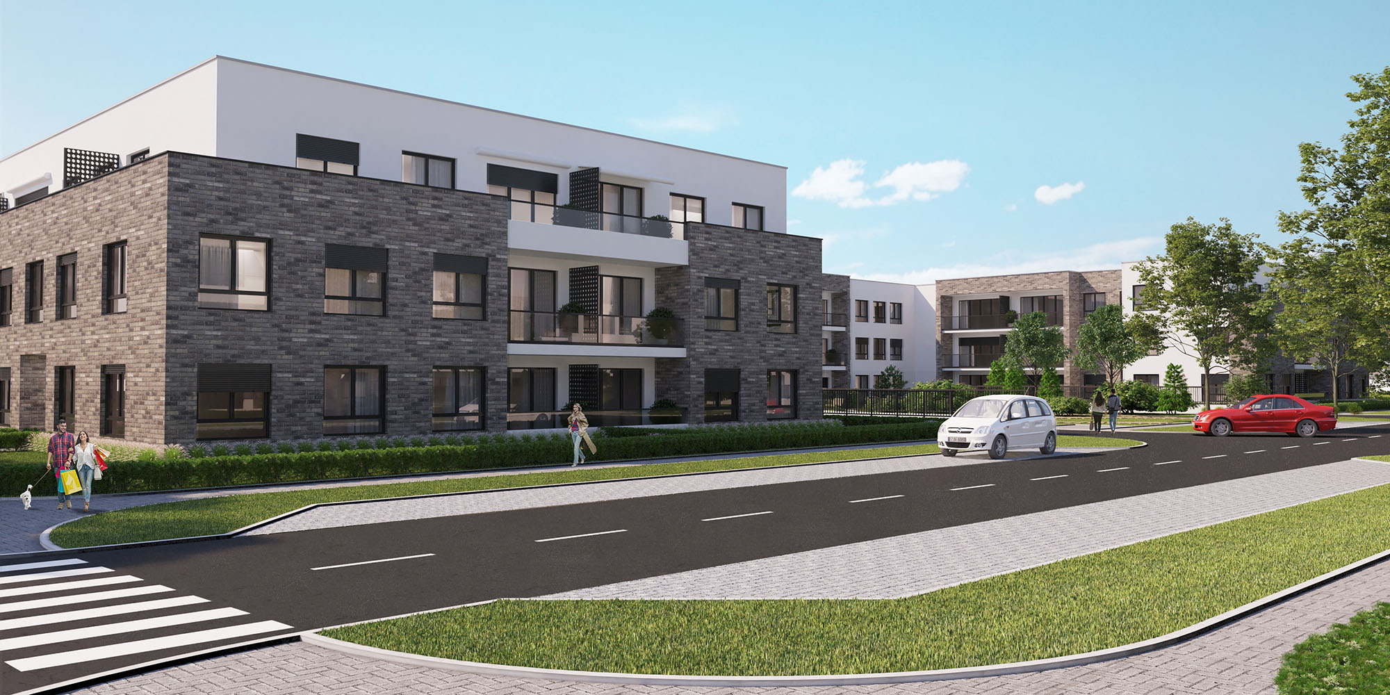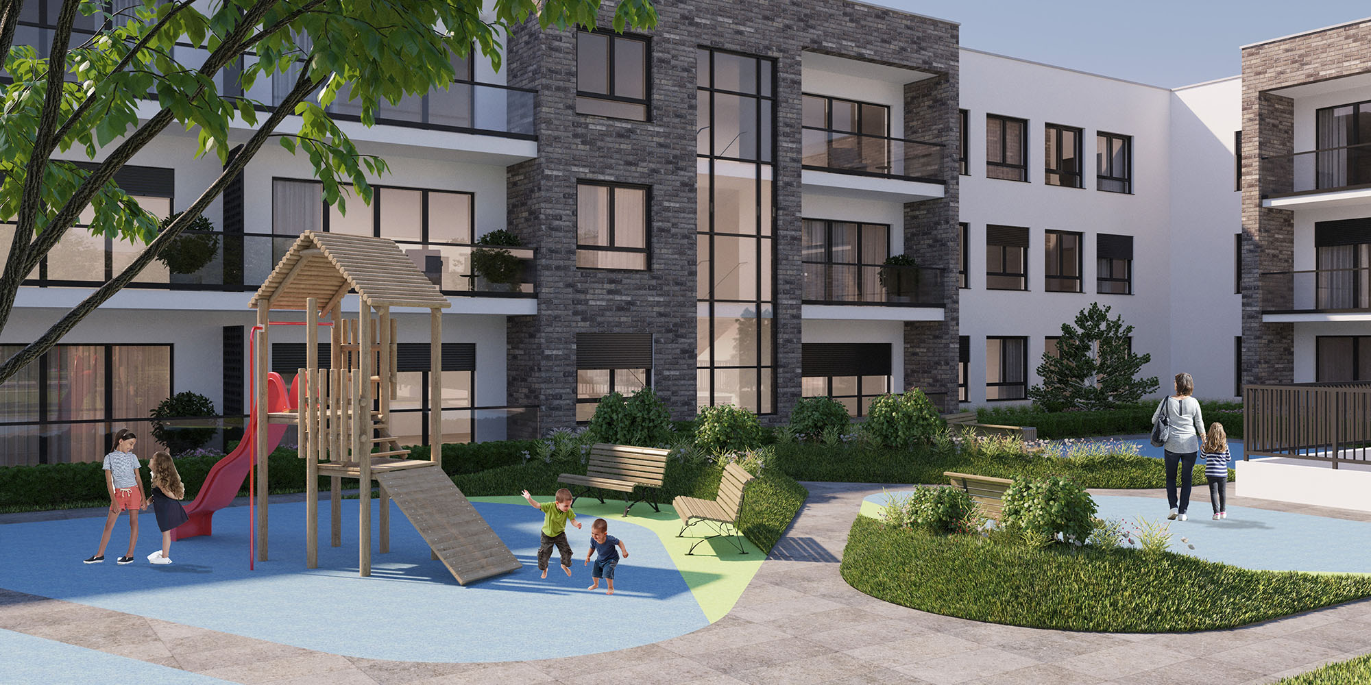 Low-rise residential complex, (GF + 1 + setback floor) is located in a secluded, quiet part of Bežanijska kosa, within walking distance of all amenities of a pleasant and comfortable modern life: schools, kindergartens, shops, markets, banks, post offices, churches. A 168 apartments of different structures (one-bedroom, two-bedroom and three-bedroom) have been designed in the complex. Car parking is provided in a well-equipped, underground garage that is directly connected to the apartments by stairs and elevators.